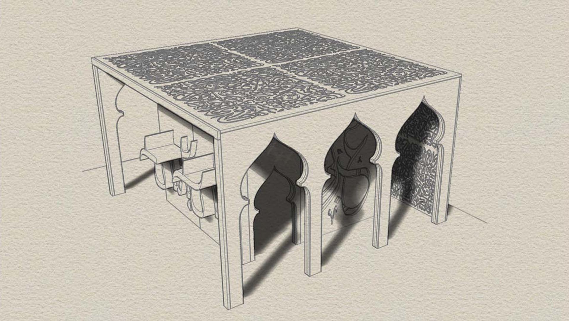 BASIC DESIGN PRINCIPLE - Create a place witha different experience for letters and writing. The structure takes the letters and the Arabic script form and integrateit into the fronts, creating a fascinating experience of light and shadow.